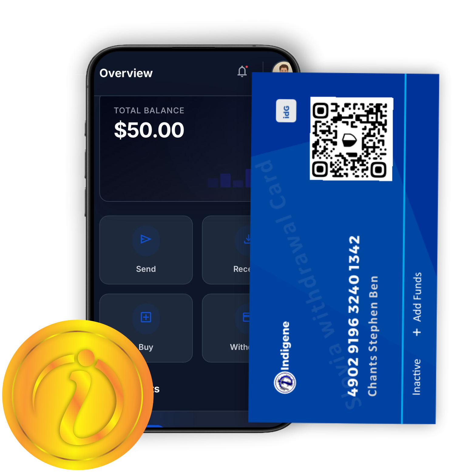 Sign up directly on our platform or register through one of our verified merchants to activate your package, receive your card, and start spending Indigene tokens with ease.
